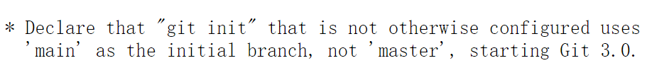 Git 3.0 及以后的版本中,使用 git init 命令初始化仓库时,除非声明了其他配置,否则将使用“main”作为初始分支,而不是此前的“master”。