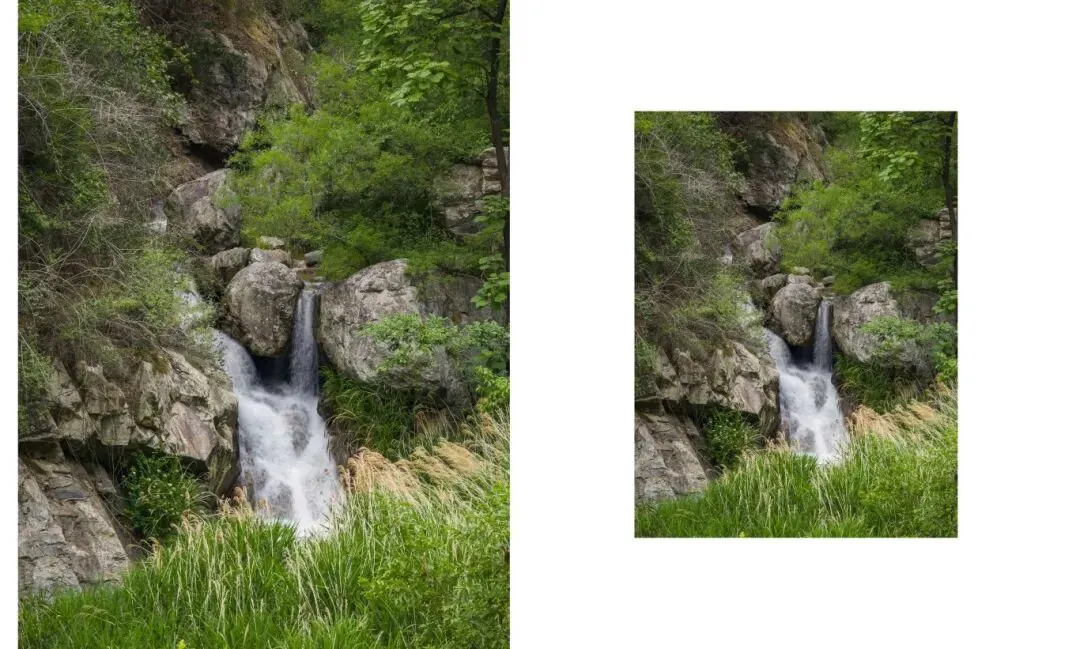 假设有一个全画幅传感器,拍摄一张照片(1 号)。再把传感器裁切掉一部分,变成 APSC 画幅,拍摄一张照片(2 号)。