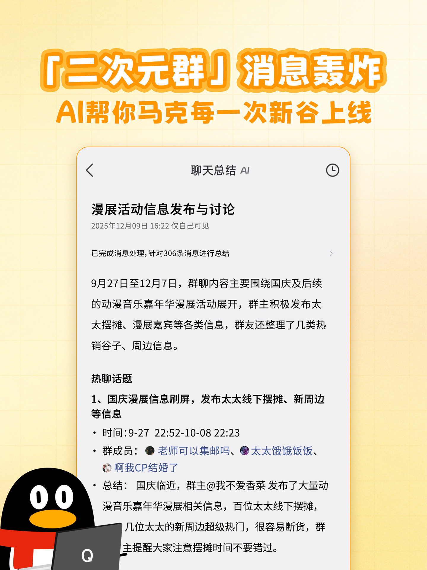 腾讯 QQ 官方表示,AI 总结仅自己可见,QQ 不会存储或用于其他场景。